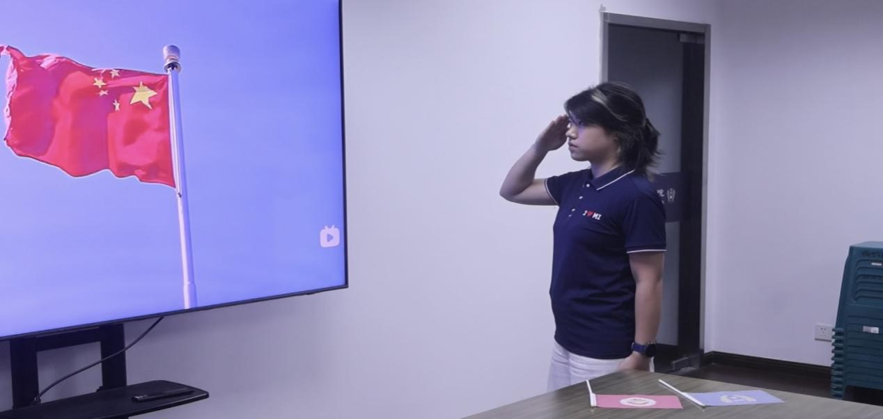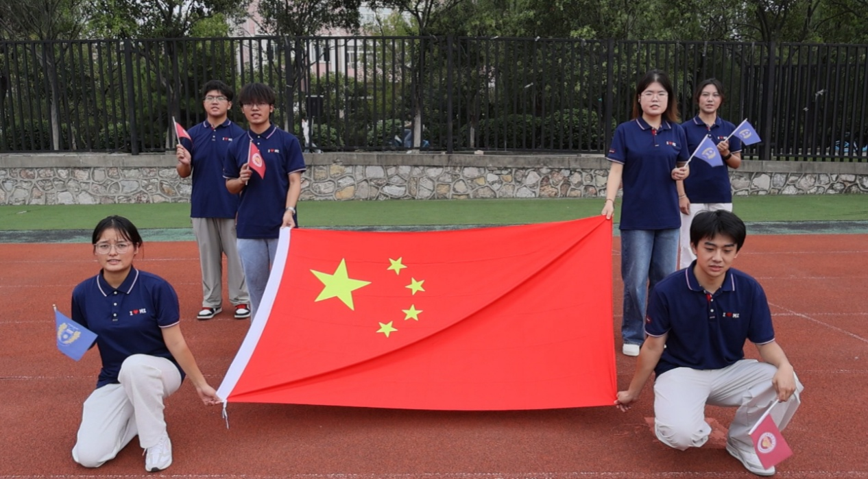 国旗在传递中缓缓展开,四名团学干部分别上前,接力诉说:“我眼中的中国,是传承里的创新”“是开放中的自信”“是青春与时代同频的澎湃”“是我们携手共筑的未来”。最后,六名学子列队站定,将国旗完全展开,齐声呐喊:“我眼中的中国,是信仰,是力量,是我们用青春守护的盛世华章!”这是他们用力守护、全力建设的家国,是青春与祖国同频共振的最美模样。